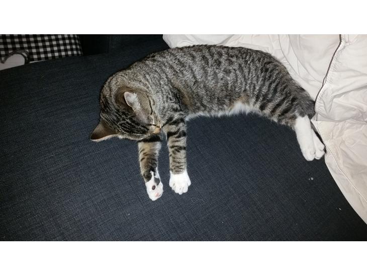 Jeg fik Felix hjem i september, der var han lige fyldt 12 uger. Han er en utrolig sød og rolig kat :)