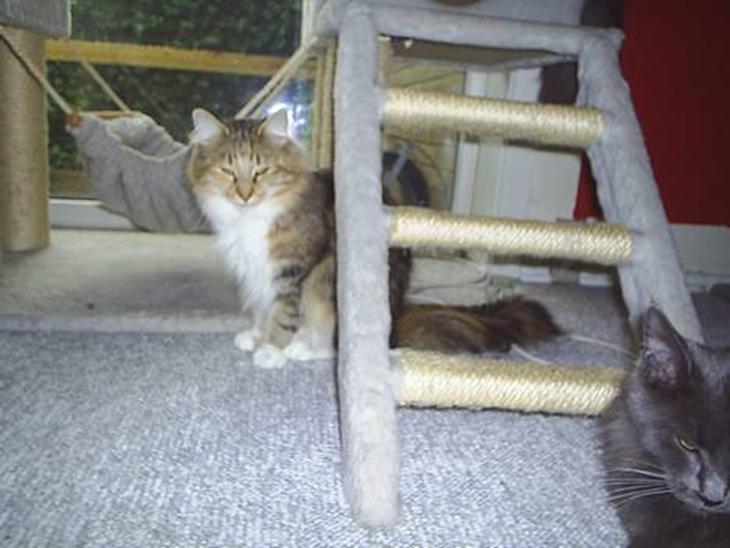 Det er en meget special kat.. Den kan åbne døre og skabe.. og kattelem.. Den er voldsom mærkelig.. haah.. Det kan jo være at norske skovkatte skal være sådan? :)