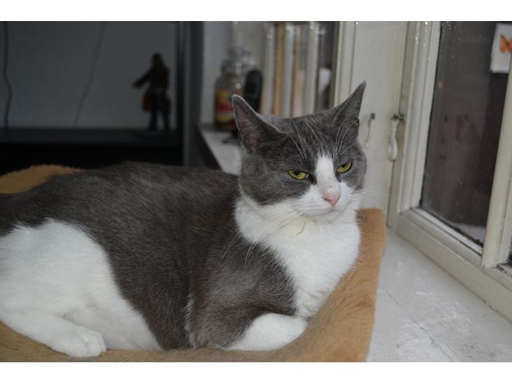 Min tilløber der oprindeligt boede hos naboen, indtil de flyttede uden hende. Hun er legesyg, og luksus kat. Elsker at jagte Felix, eneste hankat i huset, efterfulgt at et par timer på gulvvarmen men børnene.