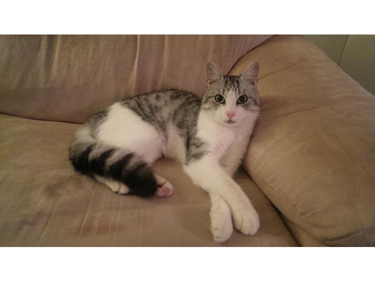 Bobo kom til os i starten af juli, og var MEGET tynd og fyldt med lopper,orm og øremider. Efter at vi havde efterlyst Bobo's ejer, gik der 14 dage, og vi fandt ejeren. Bobo kom hjem til sin ejer, men han blev ved med at komme hjem til os. Han fik hurtig et godt forhold til vores hankat, og trods at vi gjorde alt for at holde Bobo herfra, så blev han ved med at komme. Bobo's ejer kom pludselig til til mig og spurgte om vi ville overtage Bobo, da hun ikke kunne holde ham inde og når han kom ud, så løb han hen til os. Jeg sagde nej til at starte med, men resten af familien herhjemme (børnene) ville gerne beholde Bobo, og manden mente ikke at vi havde noget valg. Så til sidst sagde vi ja. Nu har Bobo fået den store tur herhjemme, imod lopper og orm, og nu skal han til dyrlæge d. 7/9 og kastreres, vaccinationeres plus behandles for øremider. Han har indtil videre taget 500g på og er begyndt at se mere normal ud nu. Han er en helt igennem lækker kat, med masse personlighed og er elsket af alle. Han snakker næsten lige så meget som vores anden hankat Gustav, så der er altid en at snakke med herhjemme :)