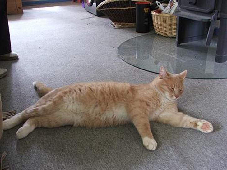 Jeg synes jeres kat er enormt flot! Den ser også enormt stor ud... Hvad vejer han? Kig forbi Sylvester med en stemme!