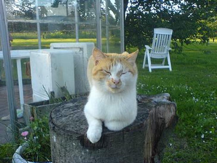Katten uden navn. Han bliver kaldt alt lige fra katmissen og bettemis til misser. Her på egnen er røde katte meget almindelige. Vi har faktisk ikke særligt mange katte, fordi ve bor på en stor vej, hvor katte, der ikke passer på, bliver kørt over. Men de katte vi har, er røde og hvide, eller sortbrogede.